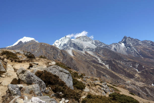 Such position reduction up to Thangsing may seem counterintuitive, yet such strategic reduction of altitude facilitates acclimatization. The path goes through the Phedang fields, which provide various views of the nearby mountains. The Thangsing camp is located in a valley where the streams of the mountain and the grazing yaks make a pastoral view.